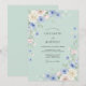 Delicate pale blue blossoms and soft blush roses drift across a serene mint background. This enchanting design evokes a feeling of gentle romance and airy elegance. The watercolor-like blooms suggest a whimsical, natural aesthetic perfect for a romantic day.