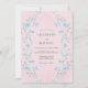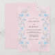 Delicate pale blue and soft grey brushstrokes artfully create a romantic floral flourish across a gentle pink background. This design evokes a whimsical and ethereal mood, perfect for a tender matrimonial occasion. The artistic rendering of blossoms adds a touch of painterly charm.