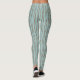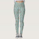 These leggings have a geometric design of sort of flat-ended ovals repeating across the design in brown on a field of pale blue.