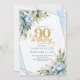 Pale blue gold floral blend fancy 90th birthday invitation