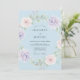 This design features a delicate palette of powder blue, soft pink, and lavender. Hand-painted watercolor hydrangeas and blush roses create an ethereal aesthetic. Lush greenery and eucalyptus leaves weave throughout the blooming arrangement for a serene, springtime feel. The overall mood is one of light, airy elegance, perfect for a romantic spring or summer event.