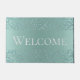 Pale Blue Green Music Notes Welcome Mat Doormat. A scrolling floral pattern of musical notes and clefs in silver aqua on a light blue green grey gradient. Elegant, music themed decor, ready to mix and match for your home, studio or special event. Change the text to anything you want, or leave it as is, a simple welcome. If you change it to more than a word or two, you may need to click the customise button and make the text smaller to fit. It's easy to do. A wonderful housewarming gift for your favourite musician or music lover.