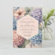 A soft watercolor design showcases abundant hydrangeas in muted blues, purples, and dusty pinks. Delicate, large-petaled blooms mingle with the clustered florets, creating a romantic and airy feel for a special occasion. The palette evokes a gentle, nostalgic charm.