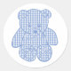Pale Blue Pastel Gingham Teddy Bear Classic Round Sticker