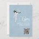This beautiful bridal shower invitation features a gorgeous design with a single long-stemmed pale dusty blue rose lying on its side mirrored in a pool of water. The title reads "Something Blue before I Do written in elegant modern script lettering with flourishes, swashes and cute romantic hearts. The back has space for a QR code to make it easy for guests to find the bridal registry. Wonderful way to celebrate the bride to be!