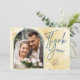 This very pale butter yellow and soft blue watercolor is a romantic and stylish theme for your wedding stationary and party supplies. The yellow and blue watercolor flowers are soft and elegant. This thank you has space for your names, your own thank you message and a photo of the wedding couple. This thanks you card is part of a range of wedding stationary and party accessories and supplier will coordinate with this invitation making your preparations easy.