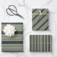 Pale green and charcoal five stripes pattern wrapping paper sheet
