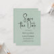 Pale Green Linen Simple Black Script Save The Date Invitation
