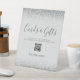 A chic, elegant sign to direct wedding guests to your cards and gifts table. The phrase "Card & Gifts" appears in charcoal handwriting calligraphy on a pale grey background. Add a QR code by entering your website URL to invite guests to contribute to your honeymoon fund. Silver faux glitter borders decorate the top and bottom edges.