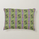 The original pattern by ZoeSPEAK on this Accent Pillow is a blend of classic and modern elements. Pale lavender stripes on a soft green background rise between rows of Zoe’s original photograph of dark green leaves in a bouquet around a purple dot. And there are smaller dots in green and orange on the stripes, with thin yellow lines forming squares behind it all. The colours are calming.