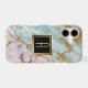 Here is an attractive faux marble phone case that adds a bit of gold sparkle and turquoise colouring to make it very unique. At the centre is your monogram in gold on a black square banner that is double lined in matching gold. Beautiful! *Please note - the metallic look is simulated, and the case does not contain metallic paint, but only the image.