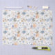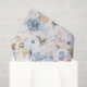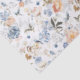 This design features a watercolor illustration of pale peach and blue blush flowers and tropical bird.