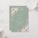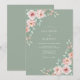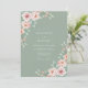Delicate pale peach and blush pink blossoms intertwine with soft green foliage in this ethereal design. The painterly watercolor style evokes a gentle, romantic mood, perfect for a serene celebration.