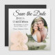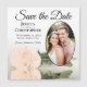 These magnetic save the date cards area wonderful way to let your friends and family know about your upcoming wedding. They feature a beautiful design that is both romantic and elegant with a single long-stemmed pale peach or light orange coloured rose reflecting in a pool of water with waves & ripples and your photo in an oval shaped frame on a classic white background. The caption reads Save the Date with space for your names, the date, and location.