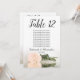 These beautiful table number cards will make it easy for your guests to find their seats at your wedding reception. They feature a simple yet elegant design with script calligraphy lettering and a single long-stemmed pale peach or very light orange coloured rose lying on its side reflecting in water. The card includes a seating chart with 10 names. There is also space for the couple's names and wedding date. This card is available in a variety of sizes and is larger than our standard table number cards.