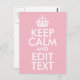 Pale Pink and White Keep Calm and Edit Text Postcard