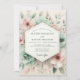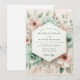 A soft watercolor rendering of blooming flowers in gentle pinks, peachy tones, and muted teal creates a romantic and ethereal atmosphere. Delicate greenery weaves through the blossoms, evoking a feeling of springtime enchantment. This design is perfect for a dreamy, natural setting.