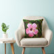 This woven cotton custom pillow features a large, light pink hibiscus on one side and the opposite side is a solid colour (green shown in example but this side is customisable, so can be changed).