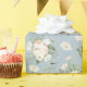 Pale pink roses on a blue background is the perfect wedding gift wrap your bride will love