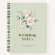 Pastel pink bouquet of roses with pastel green background, wedding notes note book design.