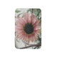 This awesome bath mat features a beautiful photograph of a pale pink sunflower. The sunflower is naturally pink and the petals have a pale pink outer ring and a darker pink inner ring. The middle where the seeds are is black. This photograph was taken in a garden.