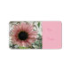 This sheet of fun sticky gift tag labels features a beautiful photograph of a pale pink sunflower. The sunflower is naturally pink and the petals have a pale pink outer ring and a darker pink inner ring. The middle where the seeds are is black. This photograph was taken in a garden.