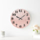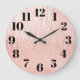 Pale rose gold faux texture digital art with black fat face numbers on a custom wall clock for her.