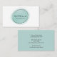 A modern stylish elegant and chic sea foam green beauty and fashion business card, with a pale sea foam green circle name logo with spiralling circles. Also suitable for event or wedding planners.