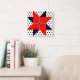 A quilt block pattern in bold red, black & white colours brings this old fashioned art into the 21st century. This design is only suitable for the square clocks.