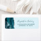 The left-hand edge of this elegant modern wedding return address label features a teal watercolor agate border trimmed with faux silver glitter. The customisable text combines handwriting script and copperplate font in dark teal on a pale teal background.