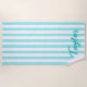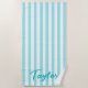 Add her name to create your own classic cabana striped beach towels in turquoise and white for a bridesmaid.