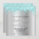 Pale Turquoise Glitter Drips Silver Drop Shadow Invitation