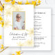 Remember your loved one and celebrate their life with the pretty Pale Yellow Daisy Flowers Funeral Service Program. This elegant custom flowery memorial service timeline features light yellow daisy flowers adorning the corners with a white background. Customise it with a picture of the deceased, personal details and order of ceremony of their celebration of life church service.