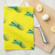 Stylish And Funky Pale Yellow Green Pineapple / Pineapples Pattern Kitchen Towel to add to your home / office / business decor collection. A cool gift / present idea for all who love custom design items, positive vibes, floral organic theme, plants, nature, earth, gardening, busy prints etc. Tropical, holidays, happy, yummy, juicy, food, fruit, fruits. Change the background colour (yellow) to suit your needs and style.