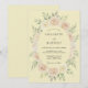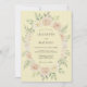 This design features a soft pale yellow backdrop adorned with a lush arrangement of delicate peach and blush pink roses. Soft sage green leaves wrap around the centre to create a romantic and airy aesthetic. The watercolor style highlights the gentle petals and botanical details for a vintage-inspired look.