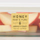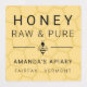 Modern honey labels for your apiary in pale yellow with a faint honeycomb pattern, clean fonts, and a modern bee icon.