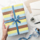 Pale Yellow, Pastel Blue and Brown Stripes Wrapping Paper
