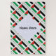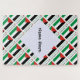 The Palestinian Flag is three horizontal stripes of black, white and green with a red triangle on the left side. In this design, the flag features the word PALESTINE, underneath, in the colours of the flag. It is tiled for artistic effect. A white space of squiggly squares holds a place for your name to add a personalised touch. If you wish to create a customised gift, just add someone else's name.