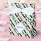 The Palestinian Flag is three horizontal stripes of black, white and green with a red triangle on the left side. In this design, the flag features the word PALESTINE, underneath, in the colours of the flag. It is tiled for artistic effect. A white space of squiggly squares holds a place for your name to add a personalised touch. If you wish to create a customised gift, just add someone else's name.
