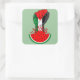 Palestine Flag on Revolution Fist Symbol of freedom coming out from a Watermelon. In occupied Palestine, watermelon is a symbol of resistance. With its colours mirroring the Palestinian flag, the fruit can be seen from the stone walls of Gaza to the galleries of Ramallah, hinting at the political history of a cherished summer fruit. As the Israeli occupiers supremacy did not allow the Palestinians to expose their own Red white black and green original Flag.