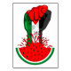 Palestine Flag on Revolution Fist Symbol of freedom coming out from a Watermelon. In occupied Palestine, watermelon is a symbol of resistance. With its colours mirroring the Palestinian flag, the fruit can be seen from the stone walls of Gaza to the galleries of Ramallah, hinting at the political history of a cherished summer fruit. As the Israeli occupiers supremacy did not allow the Palestinians to expose their own Red white black and green original Flag.