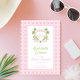 This Bachelorette Weekend Invitation has a preppy grandmillennial design featuring pink and green Palm Beach preppy styled pool chairs and umbrellas surrounded by palm trees. The back has a pink and white cane webbing pattern. You can personalise with your event details.