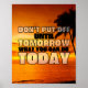 Romantic photography of a sunset on the palm beach. Complete with a motivational phrase - Don't put off until tomorrow what you can do today!
