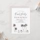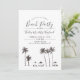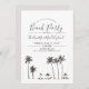 A post-wedding beach party invitation featuring a watercolor image of a single coastal palm tree. Underneath are your unique party day details.