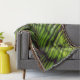 The naturally green artwork by ZoeSPEAK on this Throw Blanket is an original photograph of a royal palm frond enjoying the sunlight. Some pine needles have landed on the frond, adding to the curves of the image, with oddly shaped shadows from the branches and vines above.