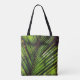The tropical green artwork by ZoeSPEAK on this Tote Bag is an original photograph of a royal palm frond enjoying the sunlight. Some pine needles have landed on the frond, adding to the curves of the image, with oddly shaped shadows from the branches and vines above.