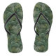 Black flip flops with a pattern of green tropical palm frond leaves, these are perfect to dress up your outfit for any occasion.