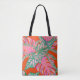 Palm leaf and coleus tropical fire tote bag