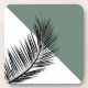 Nordic style minimal design with black palm leaf decoration and white and green triangles