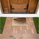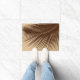 Dark chocolate brown palm leaf silhouette against a tan / beige background door mat
